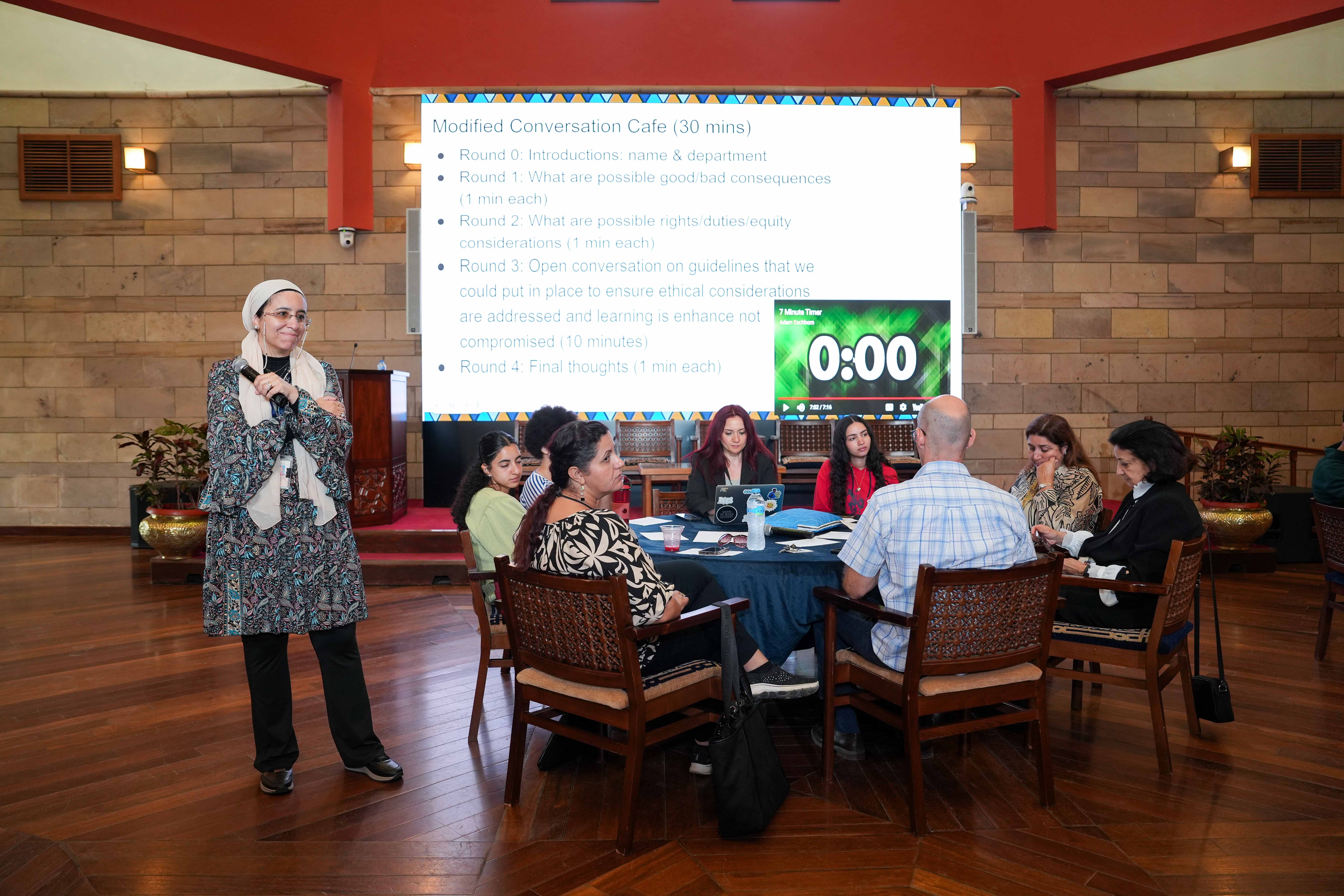 At universities worldwide, we have been spending the last few years considering guidelines for student use of AI, but there has not been enough discussion about what educators’ use of AI is appropriate and ethical. The conversations at the symposium created a safe space for students and faculty to share their views and concerns about AI use by faculty members and showed us at CLT that the levels of critical AI literacy campus-wide were quite high: generally speaking, each table had participants who were aware of AI hallucinations and the need to always revise AI outputs, as well as concerns related to data privacy and bias when using AI tools. Participants seemed aware of the limitations of AI and its potential harms, while acknowledging ways it might be helpful in some contexts. Participants also noticed that while AI might help faculty members save time, and there might be some guardrails placed to protect rights, there were also some structural issues that may lead someone to use AI, but those structural issues (fictional issues in the scenarios related to class sizes, last-minute assignment of courses, and lack of support for new/junior faculty) can be addressed in ways that may remove the temptation or need to use AI altogether. There were also some suggestions coming out from some tables that emphasized the human relationship between educators and students, and recommended faculty members partner with students to co-create instead of turning to AI, ungrading, or using things like peer review with AI instead of purely resorting to AI. Across all groups, guidelines when using AI involved transparency not only as declarations of AI use, but also explanations as to why a faculty member would use AI and having open conversations with students, and requesting consent when students’ own data might be input into an AI tool. Moreover, several groups discussed the importance of learning about using the appropriate AI tool in the appropriate place with careful prompting, training of the tool, and critically evaluating the output for accuracy and bias.
